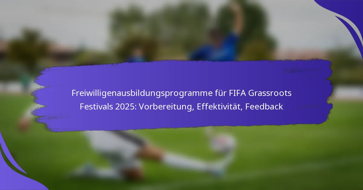 Freiwillige Helfer können sich effektiv auf ihre Rollen bei den FIFA Grassroots Festivals vorbereiten, indem sie sich auf wesentliche Schulungen konzentrieren, ihre Verantwortlichkeiten verstehen und eine positive Einstellung entwickeln. Die Vorbereitung umfasst das Sammeln von Ressourcen, die Einhaltung empfohlener Zeitpläne und das Bewusstsein für Voraussetzungen für die Teilnahme.